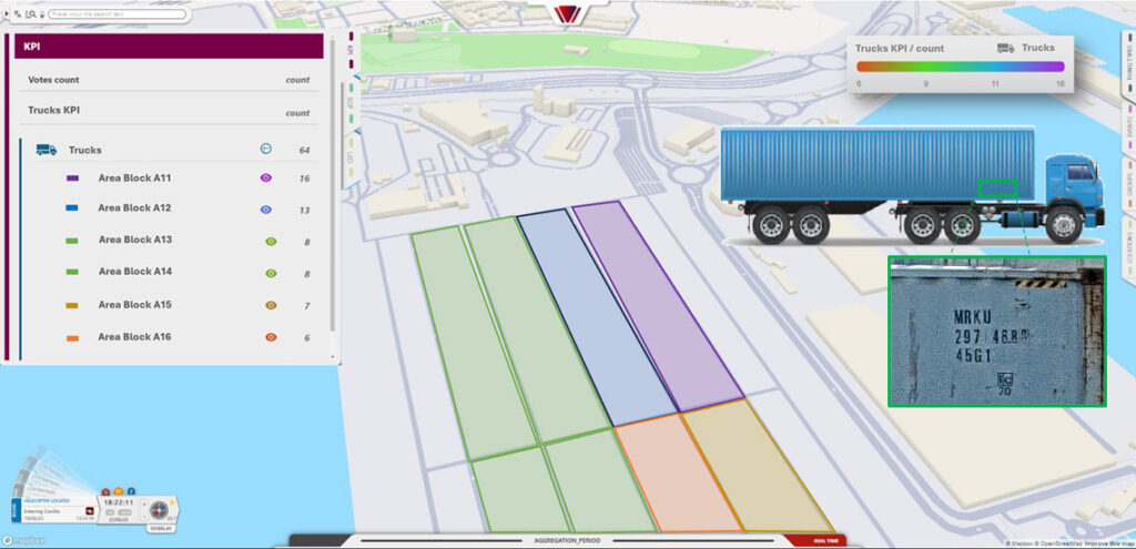 The computer vision solution will deliver each reading in real-time to the monitoring and management platform chosen by the client. This type of platform will be responsible for processing and presenting the information. On one hand, calculating travel times from the timestamps of each reading of the same container. On the other hand, comparing such times with thresholds or normalized values to detect possible anomalies. Anomalies will then be presented as alerts and these will be handled according to operational procedures.